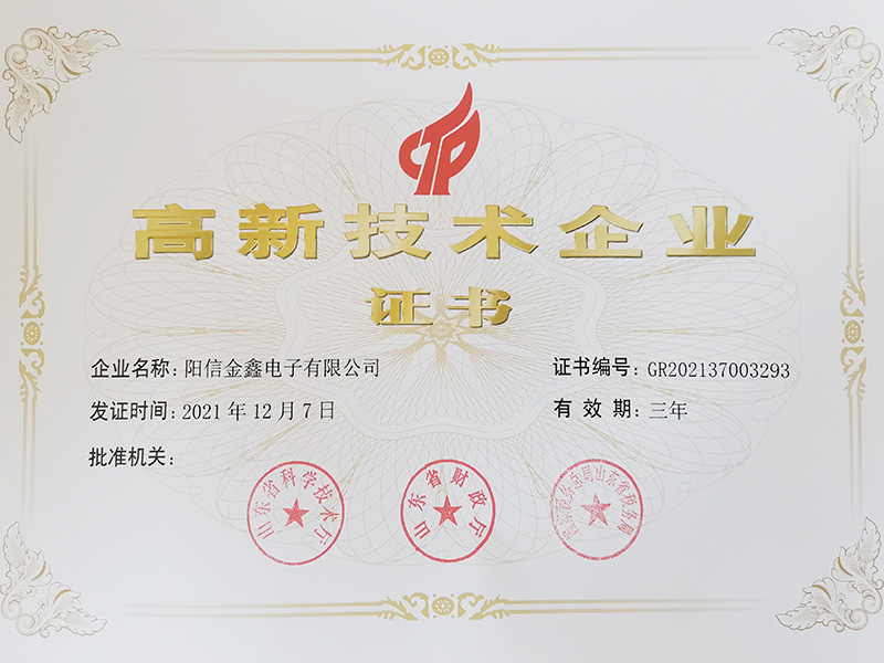 • 高新技术企业证书